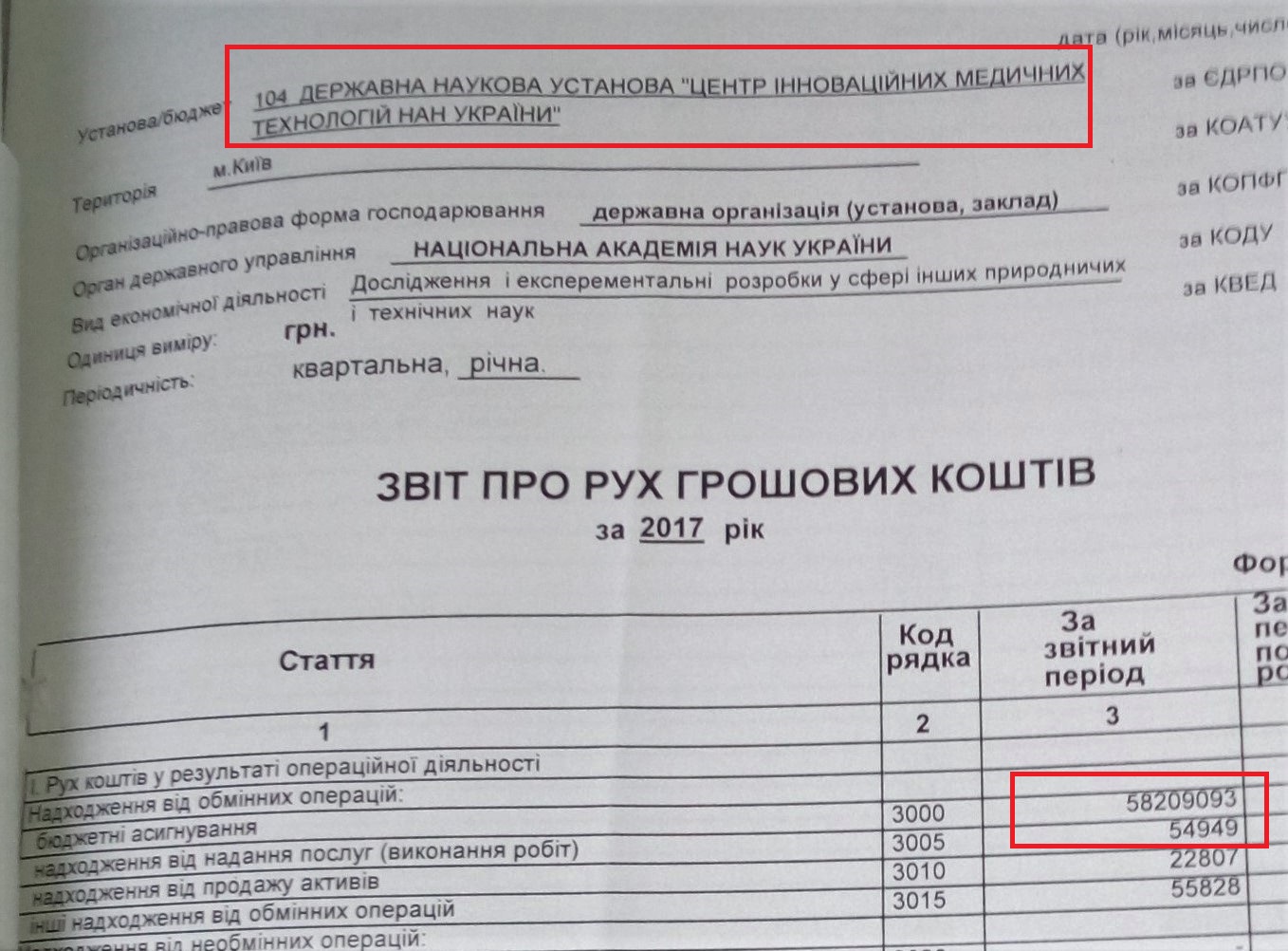 А державна наукова установа із гордою назвою «Центр інноваційних медичних технологій» самостійно заробив у 2017-му році аж 54 тисячі 949 гривень – це 0,09% від суми державного фінансування.